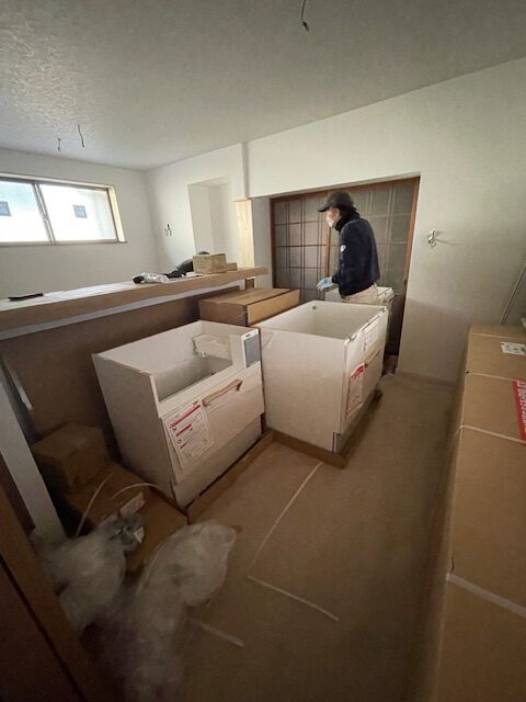 LDKリフォーム工事の菊池郡の家では、内装クロス工事が終わり
