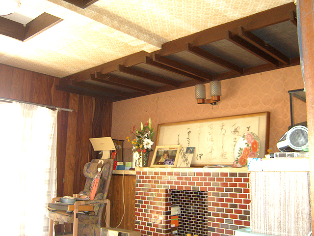 普段あまり使われる事の少なかった「応接間」は、南側にあるのですが何故か光も入りにくく、寒くて暗い部屋だったそうです。それに天井が低く圧迫感がありました。そこで、全く使っていなかった「中2階」の小屋裏部分を取り壊し、大きな梁を化粧で見せて「吹抜け」へと「間取り変更リフォーム」を行いました。天井が高すぎると部屋全体の「容積」が大きくなり「冷暖房効果」の効率が悪くなる為、1.5階分程の高さにして吹抜けを造りました。空気を循環させる「シーリングファン」も取付け、解放感がありでも寒くないリビングが完成しました。