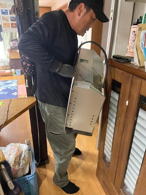 そして、電気温水器の電源とリモコン線を取り外し