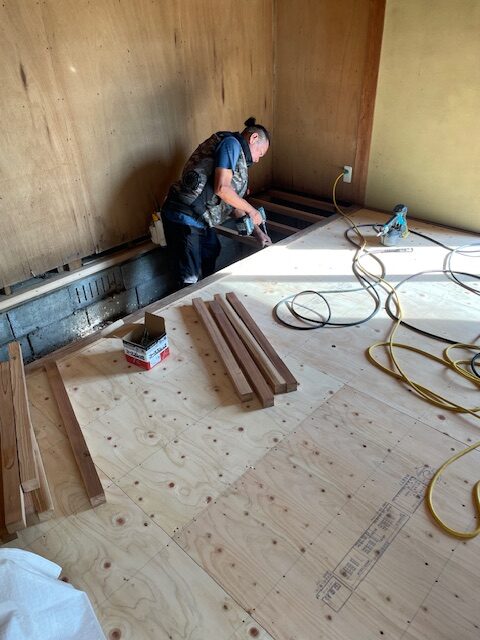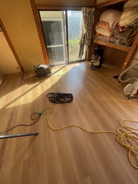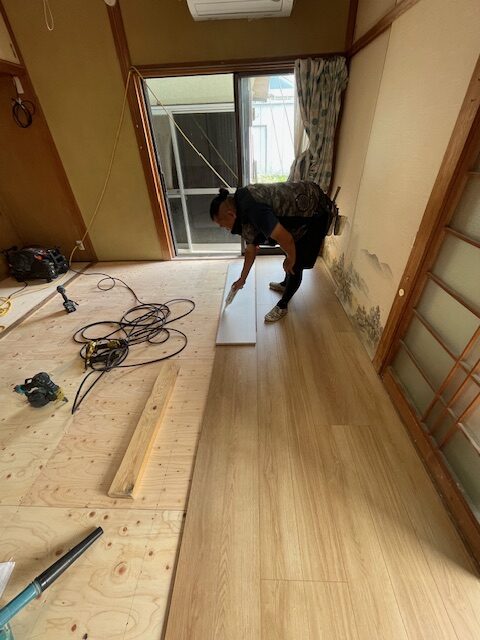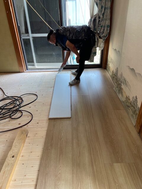 そして、新しいフローリングを貼っていきます・・・