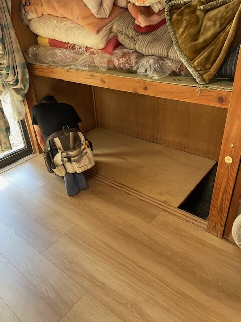 新しく床組みを補強して、フローリングを貼っていきます。