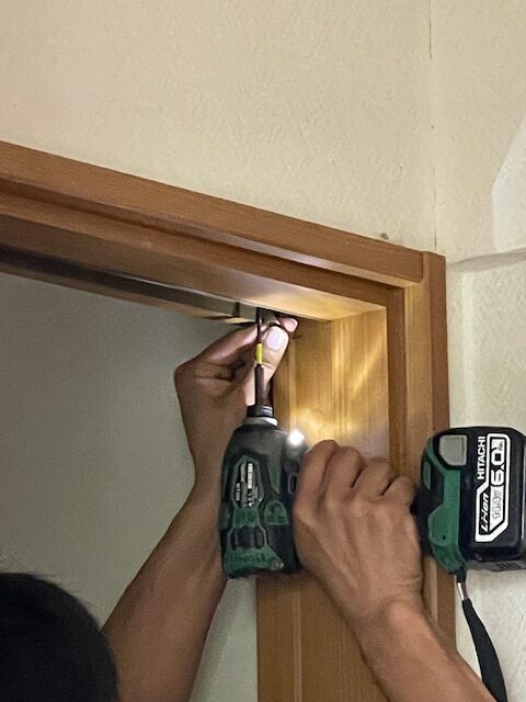 建具が「バタンっ」と閉まらないように、特殊な金具を取り付けます。