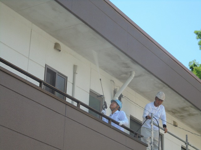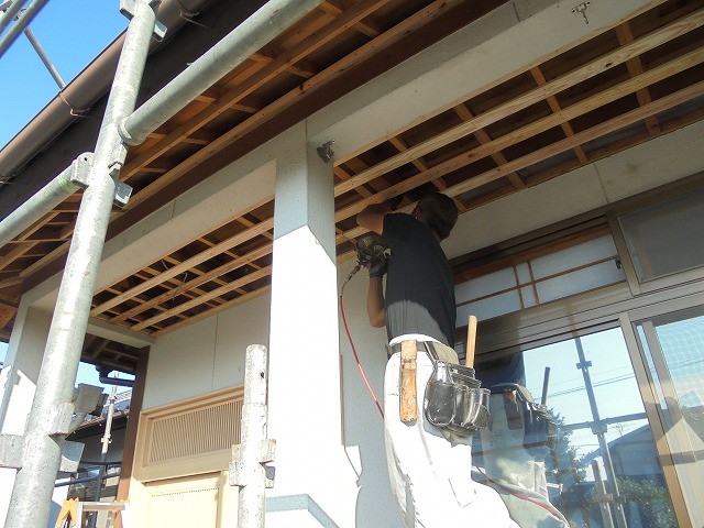 雨漏れして、汚れてしまっていた軒裏天井・・・