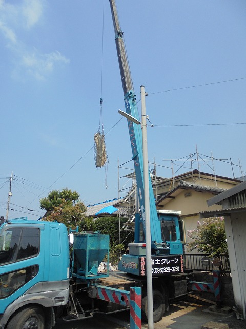 地震被害を受け、屋根瓦を葺き替える工事の松橋町の家・・・