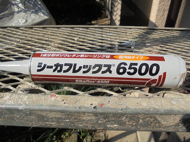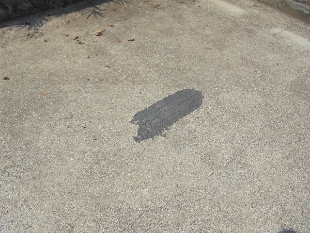 瓦屋さんが、駐車場の土間にコーキングを付けてしまいました。