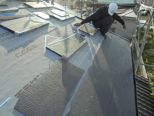 一枚一枚は、薄い瓦ですが半分以上重ねて施工します。