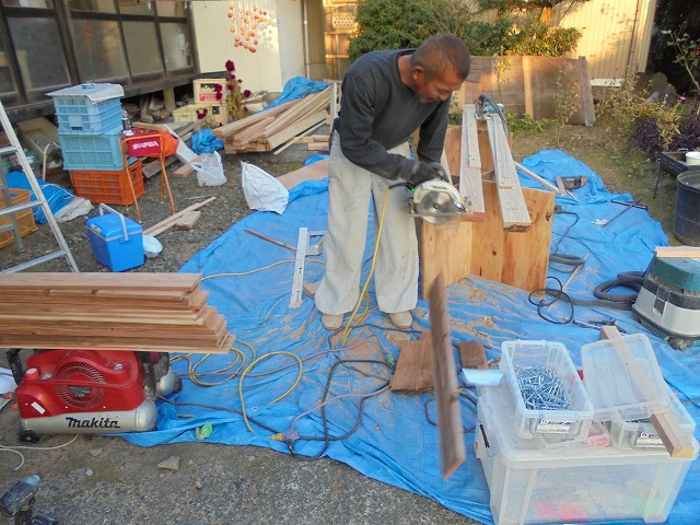 そして、地震の影響で割れてしまったボードをビス止めして行きます・・・